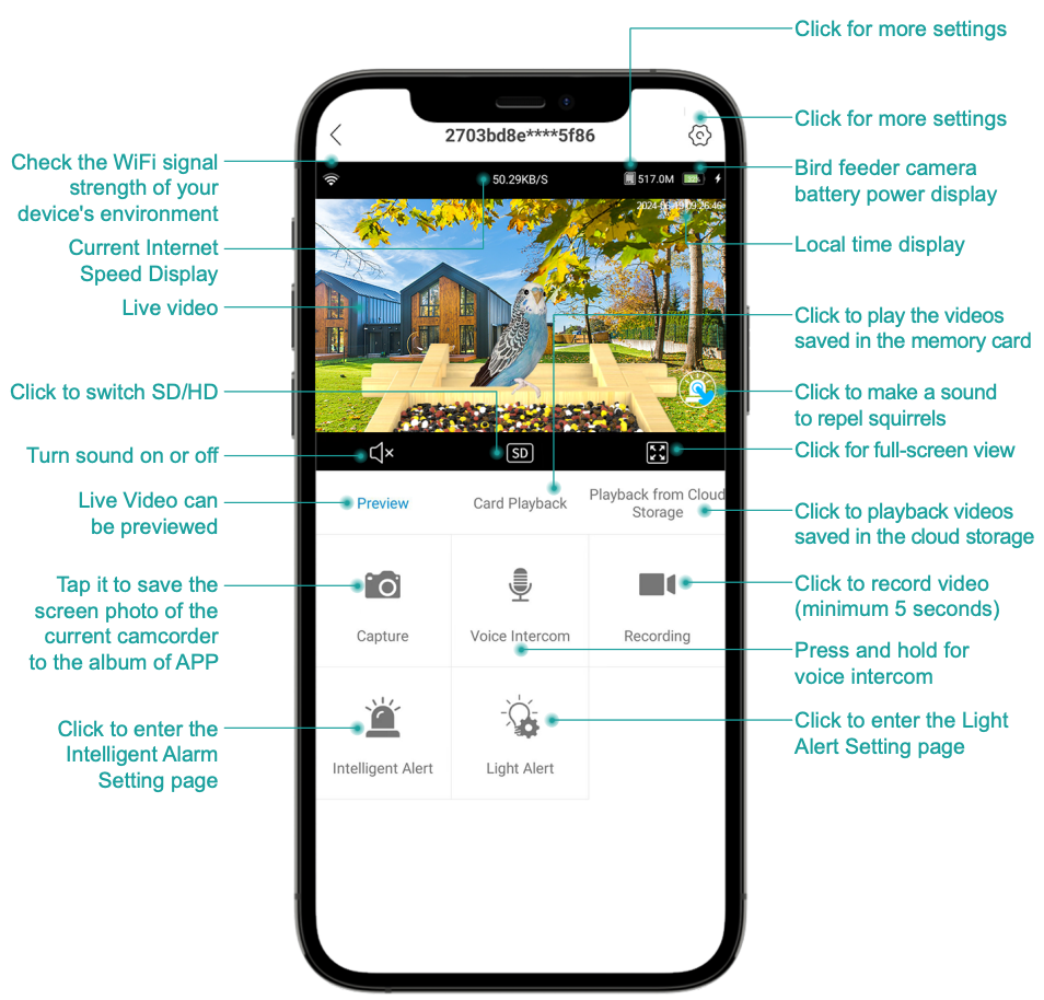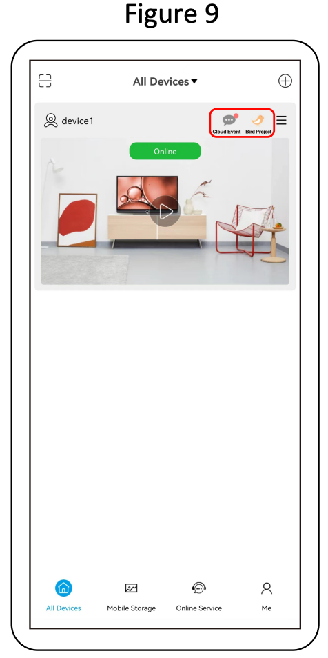 Click on the "Bird" icon to enter the Cloud Service store in Figure 9, purchase the cloud storage services, which can identify more than 10K species of birds and save more than 3-days Loop Alarm record. Now you can experience one month for free. If the bird comes, the camera will automatically recognize and save the video to the cloud, and you will receive a message. Click on the "Cloud Event" icon to see the bird's video and Wikipedia's introduction to the bird.