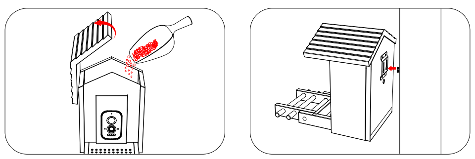 Step 5: Open the Grain storage bin covers and pour in the bird food.