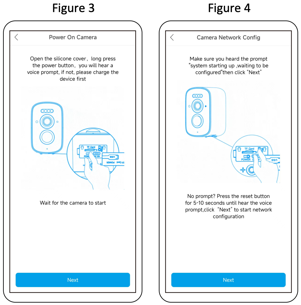 If the blue indicator light is not flashing quickly, Please try to reset the device by pressing and holding the reset button for 5-10 seconds as shown in Figure 4.